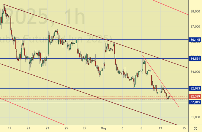 Технически мы готовы если не к росту, то к коррекции на 92000. Дальнейшее укрепление рубля вынесет с рынка многих покупателей пары, например, мы можем резко сходить к 75.00, однако, всё равно будет покупать и от уровней поддержки и при сигналах разворота вверх.
