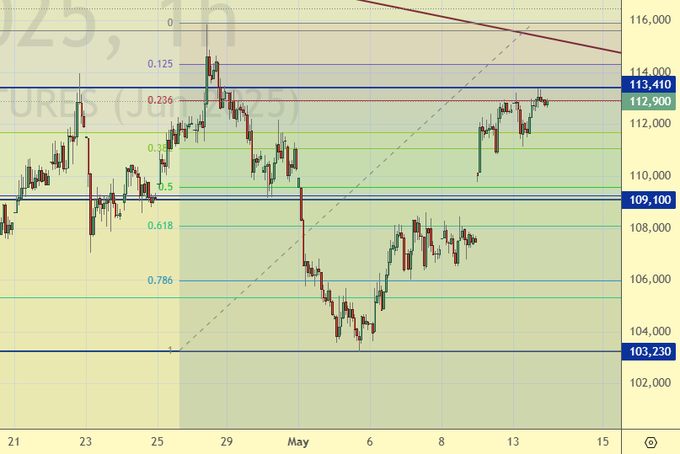 Продажа: при подходе к 114000. Стоп: 114700. Цель: 80000. Кто в позиции от 112580, перенесите стоп на 114700. Цель: 80000.