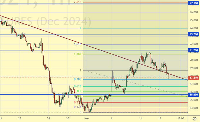 Продажа: нет. Кто в позиции от 90910, перенесите стоп на 90200. Цель: 80000 (70000?!).