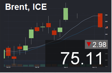 Цена в долларах за баррель. Для пересчета в доллары за тонну нефти марки Brent, необходимо цену умножить на 7,59.