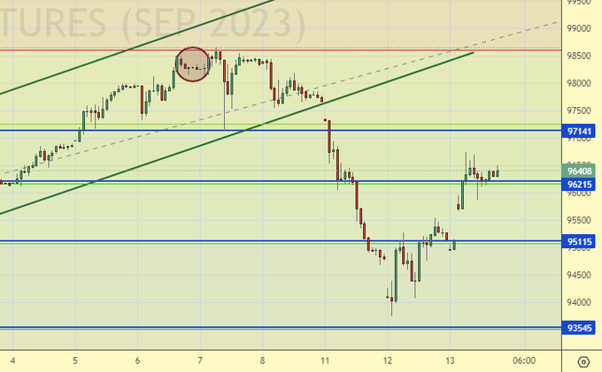 Продажа: нет. Кто в позиции от 98400, держите стоп на 97600. Цель: 90000.