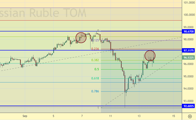Доллар продолжает сохранять свои сильные позиции перед заседанием ФРС в следующую среду. Инфляция в стране снова ускорилась и составила год к году в августе 3.7% годовых. Это означает только одно: Пауэлл точно не будет сейчас ставку понижать. Скорее всего он повысит её, что должно убить фондовый рынок и привлечь огромное количество средств в облигации США.