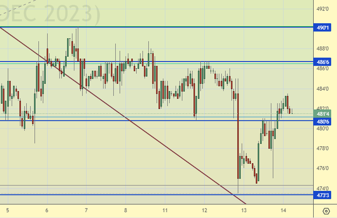Пшеница (декабрьский контракт, CME Group, исполнение 14.12.2023)