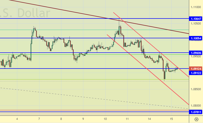 Претендуем мы на падение к 1.0780. Однако, мы не будем отрабатывать данный ход так как это движение «явным» назвать нельзя. Продолжим оставаться вне рынка до прояснения ситуации. Отметим, что покупки от 1.080 можно будет рассмотреть.