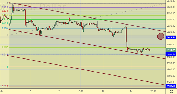 Видим, что после вчерашнего падения рынок не откатил. Это заставляет нас предположить, что рынок будет падать и дальше. Цель на 1935 остается. Есть ощущение, что ситуация намного хуже статистики, что предполагает, спрос на доллар, просто для того, чтобы обслуживать текущие долги.