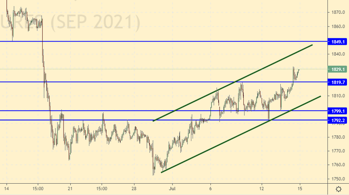 Покупка: при касании 1770. Стоп: 1762. Цель: 1840 (2000). Кто в позиции от 1783, перенесите стоп на 1798. Цель: 1848 (2000).
