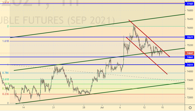 Покупка: после роста выше 75100. Стоп: 74700. Цель: 77100.
