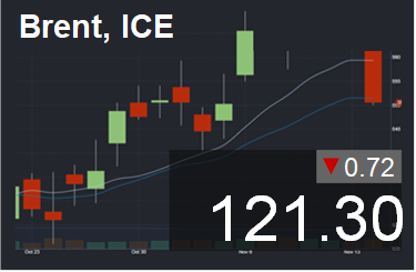 Цена в долларах за баррель. Для пересчета в доллары за тонну нефти марки Brent, необходимо цену умножить на 7,59.