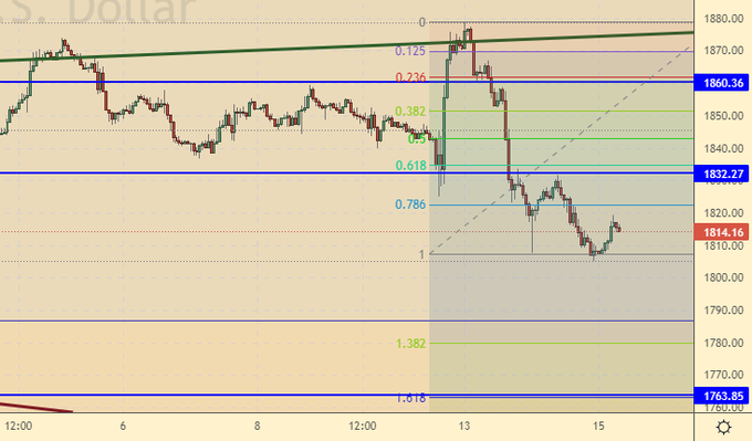 Продажа: при подходе к 1850. Стоп: 1870. Цель: 1730.