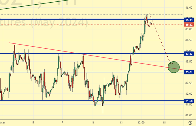 Покупка: при откате к 83.50. Стоп: 82.50. Цель: 94.00.