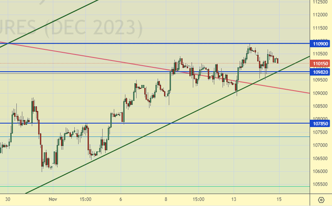 Быки продолжают оставаться неубедительными в процессе закрепления выше 110000. Это может привести к откату. Не исключено, что сегодня мы так и не сможем подняться выше определенного нами триггерного уровня на 111500, и вместо это увидим падение. В целом рынок смотрится неплохо. Шок от начала СВО в 22-м году в значительной степени купирован.