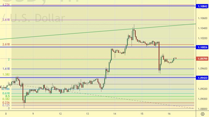 Интересная выходка, этот укол зонтиком вниз. Ну, ничего, мы сегодня пропустим торги. Нам нужен или повторный рост выше 1.1000, или падение ниже 1.0900, а текущее брожение в узком канале не интересует.