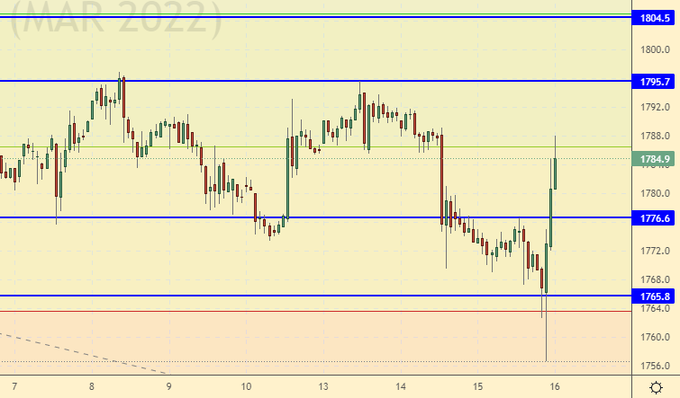 Нервные подергивания после объявления решения ФРС подошли к своему концу. Видим, что продавцам не удалось пропихнуть рынок ниже 1750. Покупатели пришли на рынок на фоне осознания того факта, что ФРС не будет слишком форсировать события. Мантра о снижении инфляции в 2022-м году была озвучена и теперь, видимо, будет повторяться на регулярной основе. Пока мы остаемся быками по золоту.