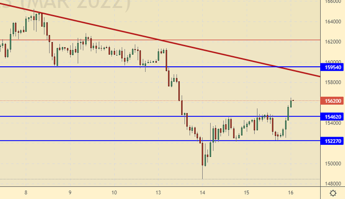 Продажа: при подъеме к 159000. Стоп: 161700. Цель: 145000.