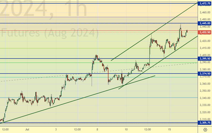Продажа: при падении ниже 2410. Стоп: 2440. Цель: 2120.