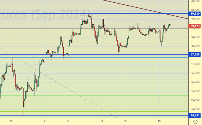 Продажа: нет. Кто в позиции от 89000, держите стоп на 89400. Цель: 75000.