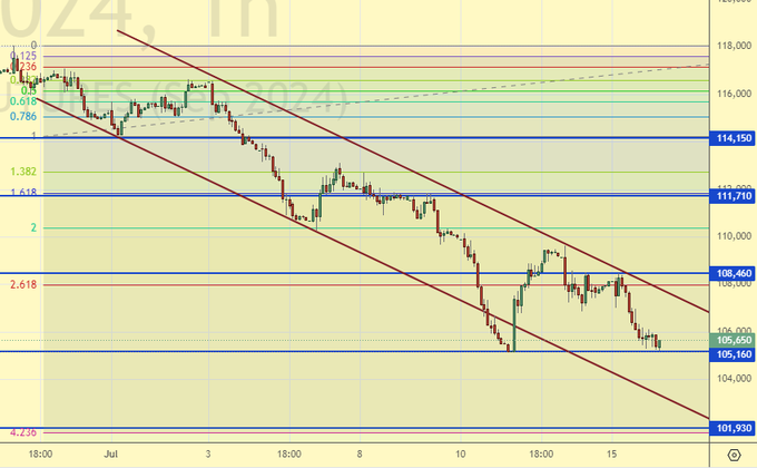 Да, падем быстро, потому-то продажа у нас и есть «шорт». Не дали нам 111700, продавать с текущих уровней не будем. Цель на 102000 практически осязаема. А вот еще более глубокое падение пока поставим под вопрос.