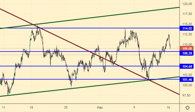 Начали неделю с падения цен. Пока не можем закрепиться выше 112.00, что повышает шансы на разворот рынка вниз. У быков уже явно заканчиваются деньги.