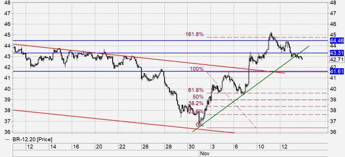 Продажа: нет. Кто в позиции от 43.00, перенесите стоп на 43.60. Цель: 41.70.