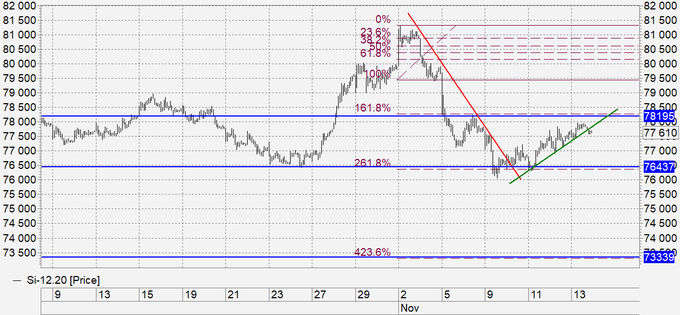 Наиболее вероятно: откат к 77.70 и продолжение падения.