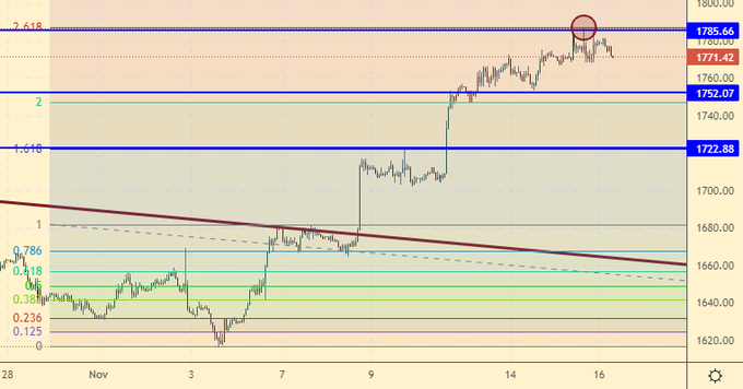 Падение чьих-то ракет в Польше несколько потревожило рынок вчера вечером. Пока бурной реакции на произошедшее нет. Золото не смогло взять 1785, что делает возможным откат к 1700.