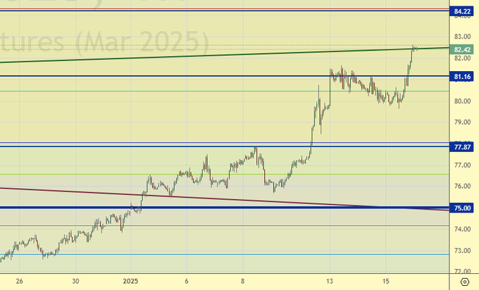 Продажа: при подходе к 84.20. Стоп: 84.70. Цель: 74.00.
