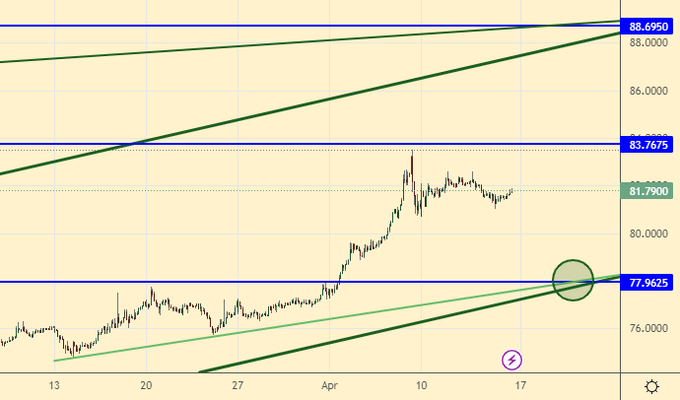 Покупка: при откате к 78.00. Стоп: 77.40. Цель: 84.25 (88.00).