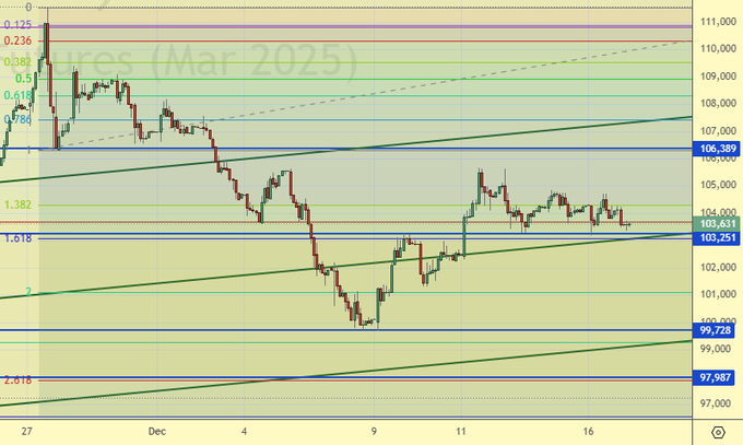Продажа: при подходе к 106300. Стоп: 107300. Цель: 98000. Кто в позиции от 104278, держите стоп на 105600. Цель: 98000.