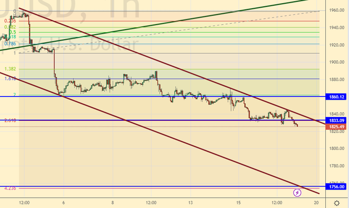Продажа: при подходе к 1860. Стоп: 1880. Цель: 1760. Кто в позиции от 1950, перенесите стоп на 1890. Цель: 1760.