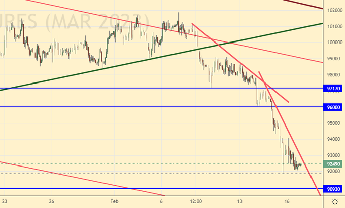 Продажа: нет. Кто в позиции от 101000, перенесите стоп на 93300. Цель: 80000 (50000).