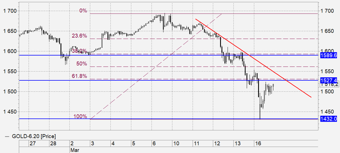 Используя наш вчерашний прогноз на рынке золота и отслеживая течение торгов, вы могли заработать на бирже более 160 долларов на одном контракте продав от 1548, зафиксировав прибыль на 1450. Тут же купив от 1450 и закрывшись в конце дня на 1520.  Если учесть, что гарантийное обеспечение одного контракта 11900 рублей, ваша доходность за день могла составить  100%!