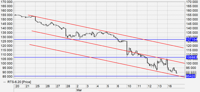 Рубль: нефть не оставляет рублю шансов. Индекс RGBI продолжает падать, что сигнализирует нам о том, что долговые бумаги РФ распродаются. Понимаем, что если нефть простоит в районе 25 на протяжении 3-х месяцев и более у рубля появятся предпосылки хода к 100.00. Предпосылки хода к 85.00 есть уже сейчас. Подъем ставки на 0.25% или на 0.5% ЦБ РФ в пятницу ничего не изменит. Возможно, лучше не трогать рычаги и оставлять возможность предприятиям перекредитовываться по более низким ставкам, что равносильно выживанию в складывающихся плохих внешних и внутренних обстоятельствах.