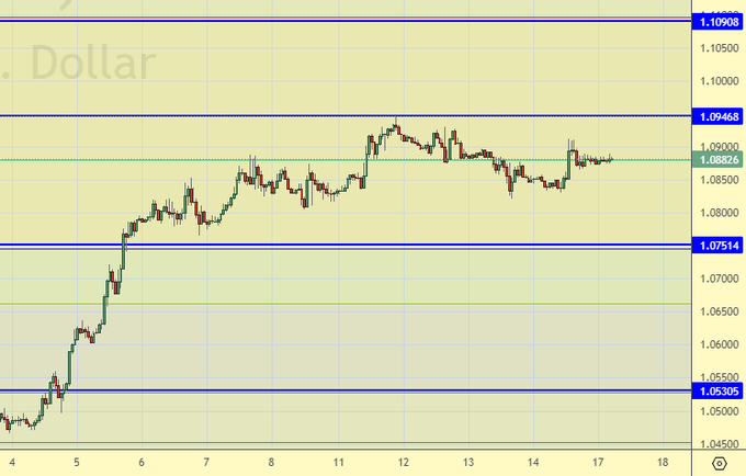 Делать какие-то ставки по данной паре на текущих уровнях не имеет смысла. Мы уже в тени приближающегося заседания ФРС. Решение по ставке будет оглашено в среду. Откат к 1.0550 можно использовать для покупок. Рост к 1.1100 для продаж.