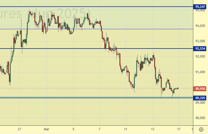 Перешли на июньский контракт. Российским предприятиям будет непросто показывать профит, и уж тем более делиться им с акционерами. Держать бумаги скорее всего будут в долгую, спекулянтов станет меньше. Пока не видно, чтобы в реальном мире, а не в фантазиях инвесторов, ситуация стала бы лучше. Совсем нет. Москва очень вряд ли подпишет сейчас перемирие. Оно совершенно не нужно Кремлю.