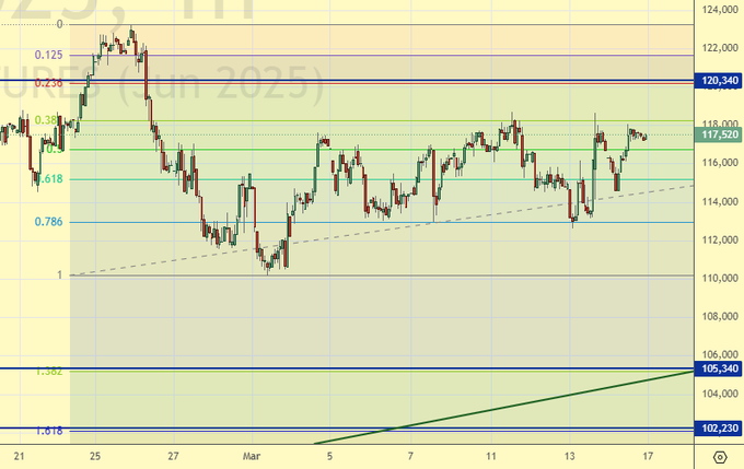 Продажа: при подходе к 120000. Стоп: 122000. Цель: 105000.