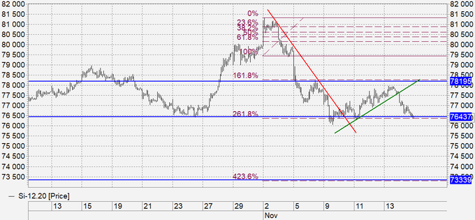 Продажа: нет. Кто в позиции от 78040, перенесите стоп на 77800. Цель: 73400.