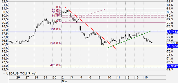 Национальная валюта продолжает укрепляться. Всё готово для хода вниз к 73.00. Более сильное укрепление пока не рассматриваем. Посмотрим чем закончатся выборы в США.