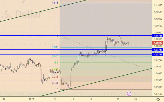 Продажа: нет. Кто в позиции от 1.0800, держите стоп на 1.0900. Цель: 1.0000.