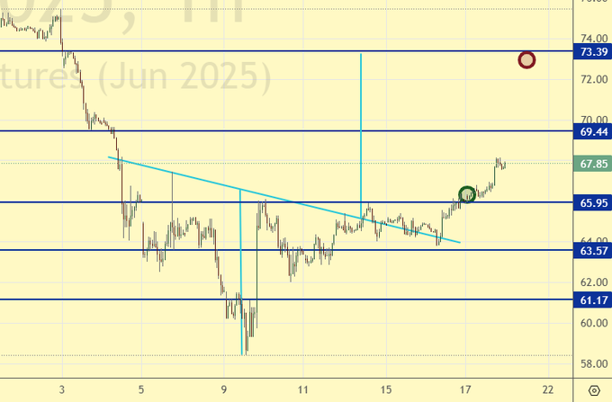 Покупка: нет. Кто в позиции от 66.70, перенесите стоп на 65.80. Цель: 73.20.