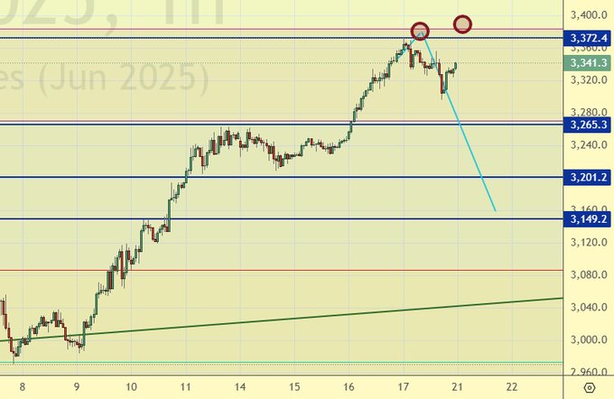 В целом мы в том районе, где можно продавать. Выбор конкретной точки это уже искусство. Из-за пошлин Трампа небеса на землю не упали и на том спасибо. Народ немного успокоится скорее всего. Но сломать бычий тренд по золоту будет непросто.
