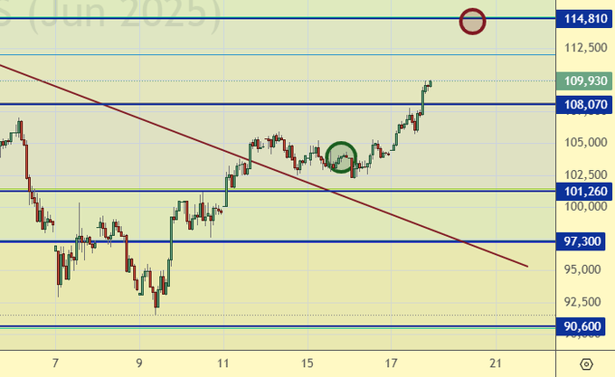 Покупка: нет. Кто в позиции от 104120, перенесите стоп на 109000. Цель: 114700.
