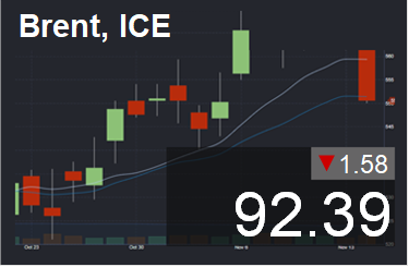 Цена в долларах за баррель. Для пересчета в доллары за тонну нефти марки Brent, необходимо цену умножить на 7,59.