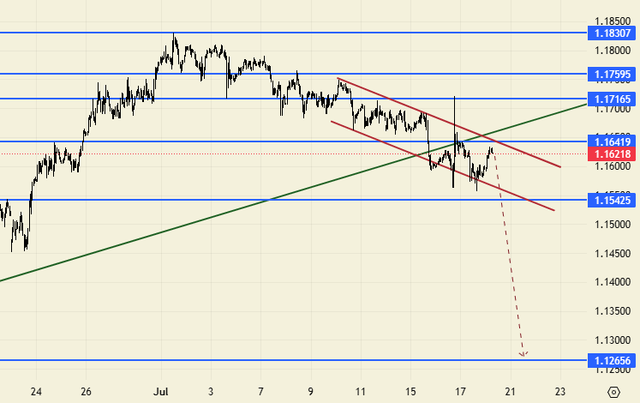 Продажа: возможна. Кто в позиции от 1.1610, держите стоп на 1.1725. Цель: 1.1270.