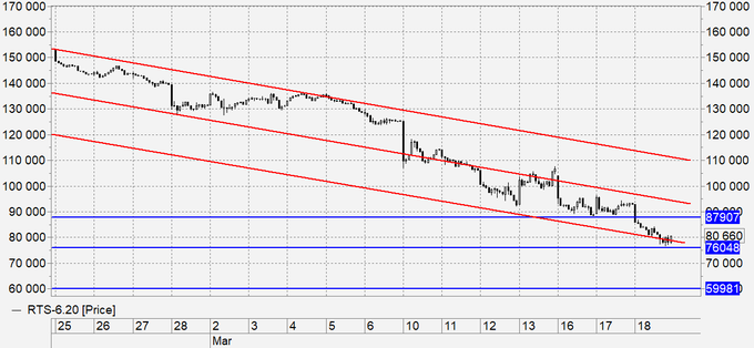 Индекс РТС: не стали мы разворачиваться от района 85000 и продолжили обесценивать активы олигархов вплоть до 76000. Такими темпами список русского Форбс будет выглядеть так, что на первом месте обоснуется некто со скромным состоянием в сто миллионов долларов, не более. Шансы на откат к 87000 существуют. Возможны точечные покупки при постоянном нахождении у монитора. После прохода 85000 вниз, стратегическая цель у нас теперь находится на 60000.