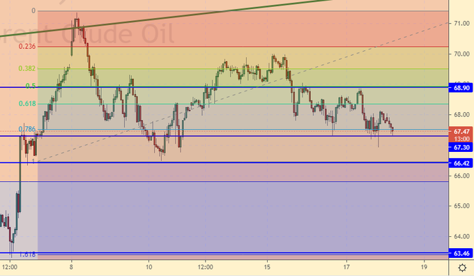 Продажа: нет. Кто вошел от 69.30 и 69.80, перенесите стоп на 69.07. Цель: 63.60.