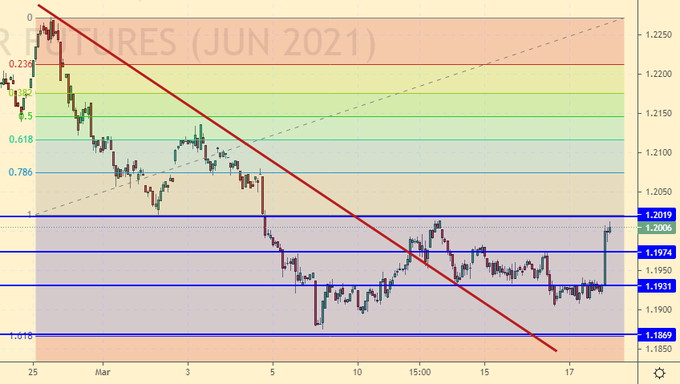 Таким образом, у США прекрасные перспективы в будущем, но неплохо бы было лучше понимать, что происходит сейчас. А цифры за первый квартал мы получим лишь в апреле. Поэтому и нефть после заседания не спешит продолжать свой рост, так как фокус был смещен в будущее. По текущей же ситуации ничего слишком радостного сказано не было, кроме того, что надо продолжать вакцинацию, мы восстанавливаемся, мы боремся, мы раздаем деньги.