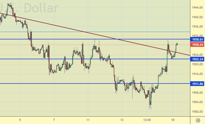 Заседание ФРС в среду. До этого события трейдеры не будут предпринимать каких-либо шагов. Скорее всего мы будем в диапазоне 1925 – 1950. Отметим, что в случае роста ставки падение цен на золото продолжится при условии, что не будет предположений о том, что данное повышение последнее.