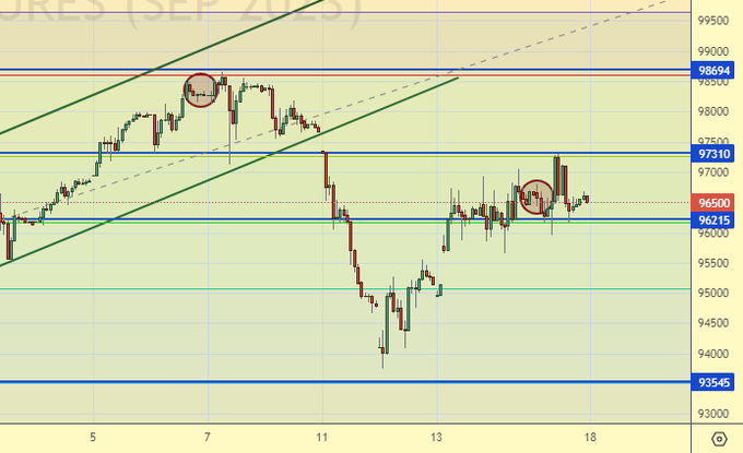 Продажа: нет. Кто в позиции от 98400, держите стоп на 97600. Цель: 90000.