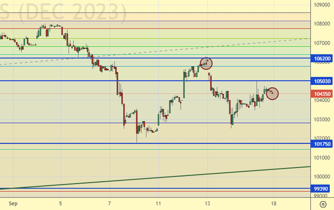 Продажа: нет. Кто в позиции от 105500, держите стоп на 107200. Цель: 90000.