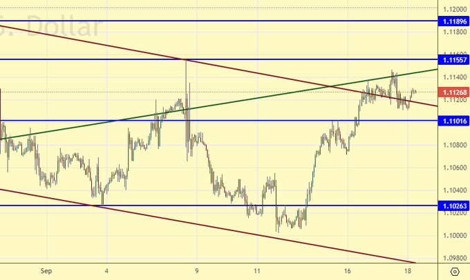 Продажа: нет. Кто в позиции от 1.1125, держите стоп на 1.1170. Цель: 1.0000.